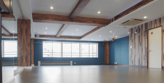 74㎡と広々としたダンスフロアで、膝や腰への負担を軽減する衝撃吸収構造 (NSSAフロア)になっております。